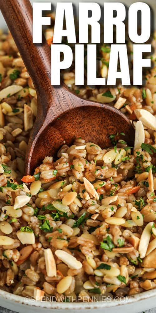 A Farro Pilaf egy könnyű, ízletes étel, amely kiegészíti mindenféle fehérje ételt, például csirkét, marhahúst és sertéshúst!