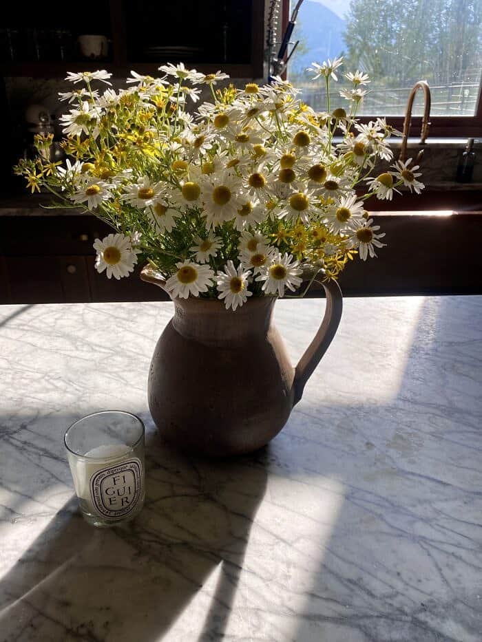 a: fresh flowers and a sunny day, or a sunrise/sunset.