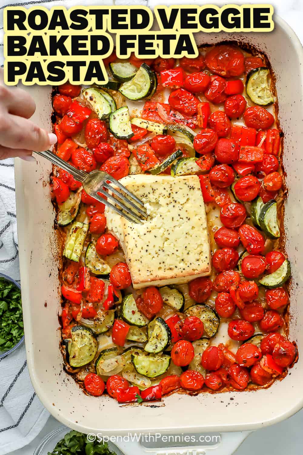 Rengeteg egészséges zöldséggel megrakva ez a feta tésztaétel költségvetés-barát, kiadós és jaj-ízes!